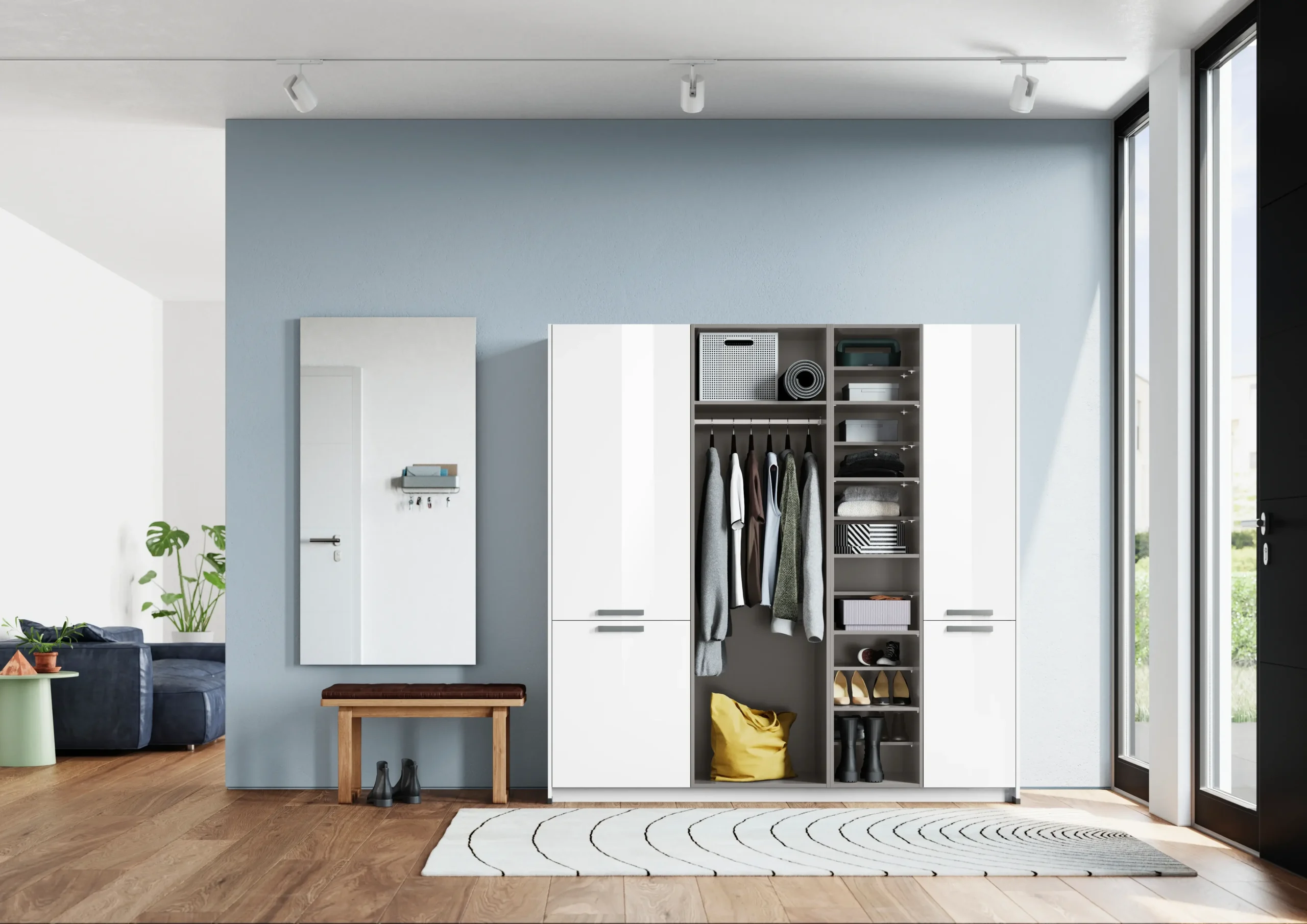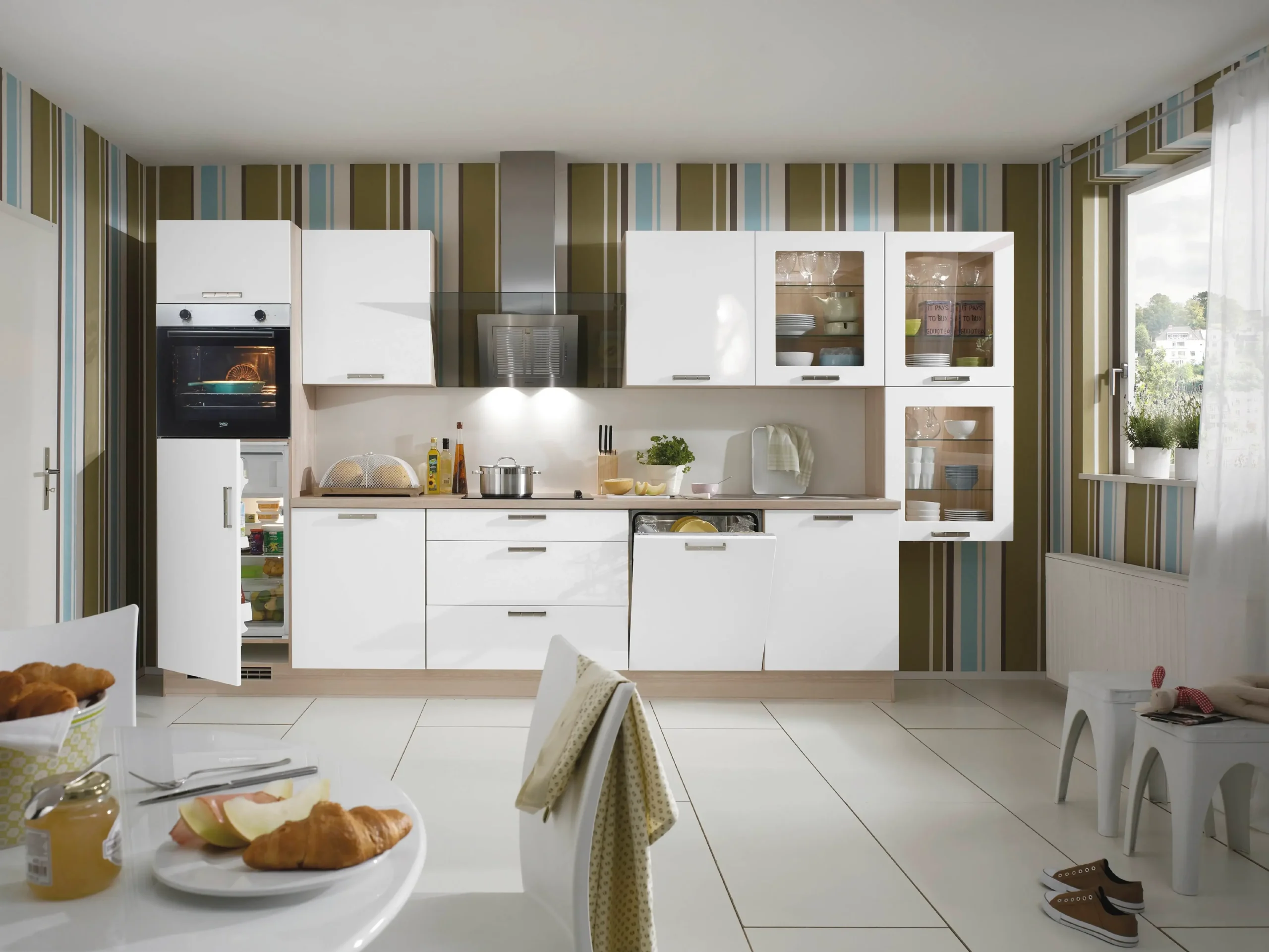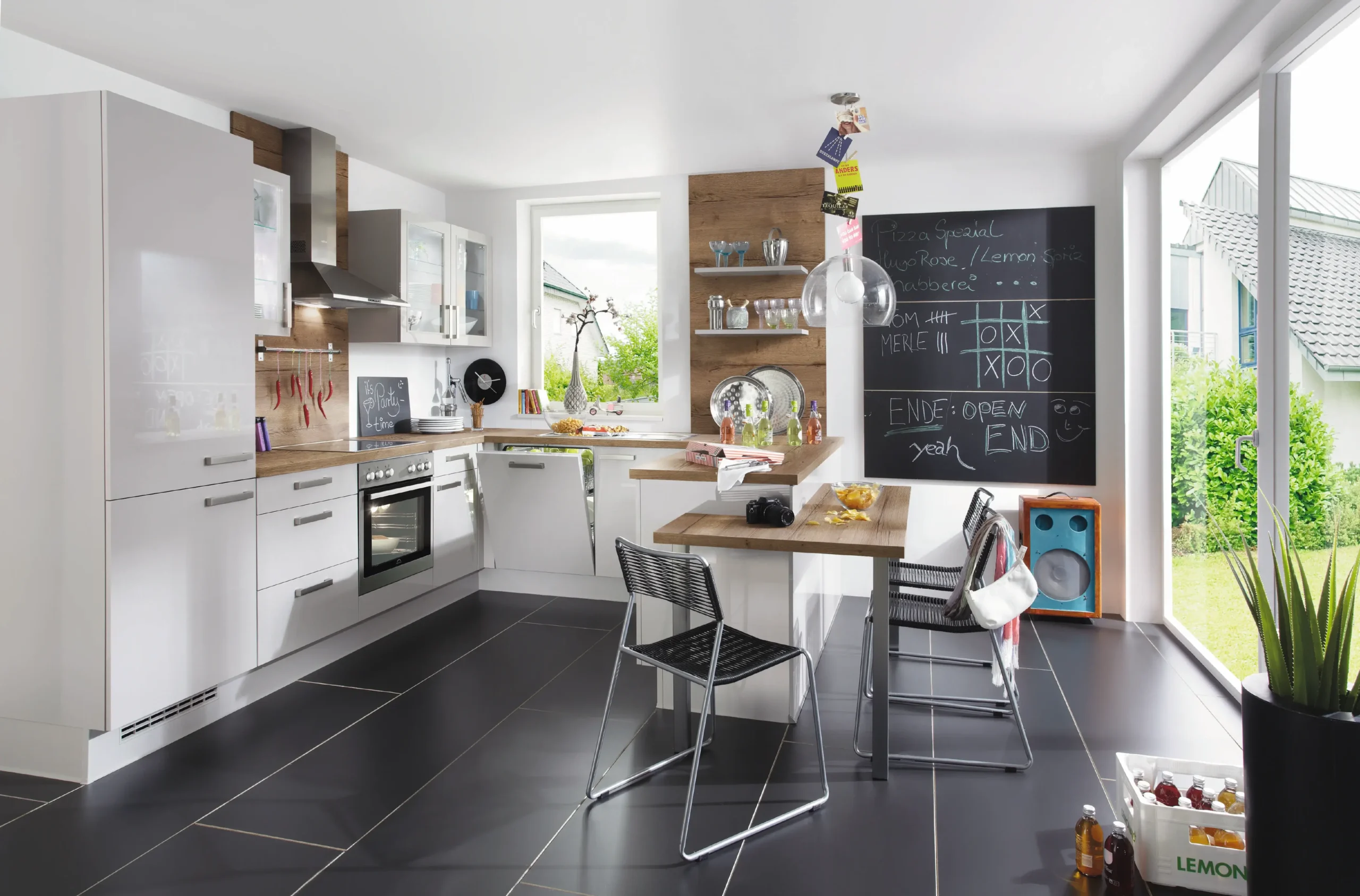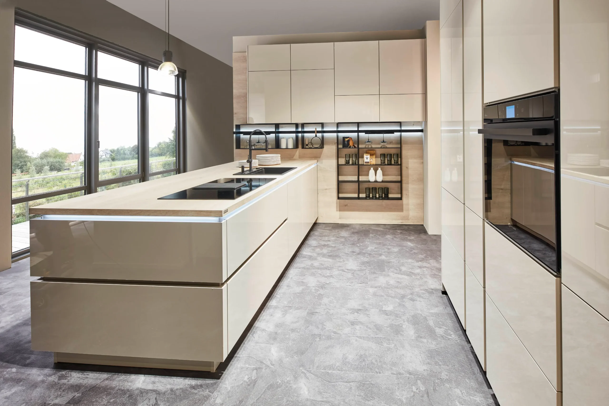 Introducing the Lounge Collection, where comfort meets sophistication. True to its name, this collection creates an inviting atmosphere. The high gloss white cabinet fronts impart a sleek and modern appearance, especially striking when complemented by wood accent panels or shelving units. This combination effortlessly transforms the kitchen into a stylish and cozy space for cooking, dining, and working.
